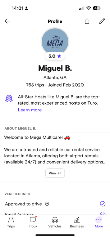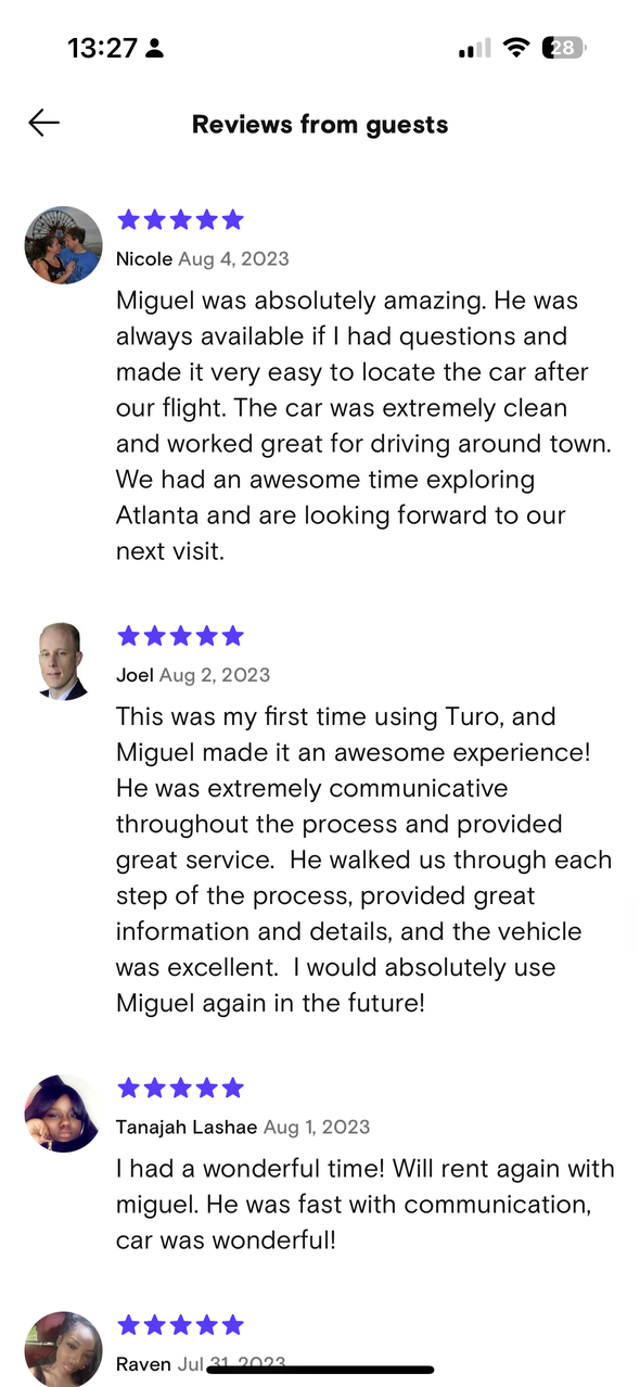 I’m Miguel, the owner-operator of Mega Multicare. When COVID hit, I began exploring ways to generate additional income. I started by investing in rental properties north of Atlanta. In 2021, I listed my first car on Turo to help cover its payments, as I primarily used a company car. Seeing the success Turo could bring, I invested in another vehicle by the end of the year.