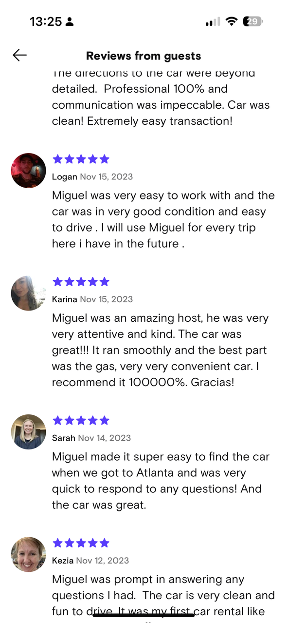 While working my full-time job, I gradually expanded my fleet, most days starting at the airport at 4am, traveling to my 7am-5pm job, and then leaving the airport late at night. In 2023, after almost two years on Turo, I was wrongfully terminated from my job of 25 years. Fortunately, I already had 10 cars on Turo, allowing me to focus full-time on my car-sharing business. Within the first month, I purchased 2 more cars while co-hosting others. This unexpected redirection in life, pushed me to achieve my three year plan, in less than two years.